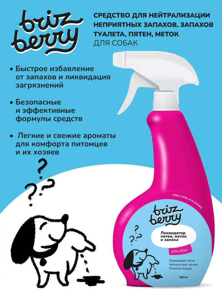 Brizberry Ликвидатор пятен, меток и запаха для собакВ данный момент этот товар отсутствует в продаже. Возможно, у нас найдется аналогичный или похожий товар здесь. Спрей Brizberry Apicenna — инновационное решение для вашего дома и комфорта ваших питомцев — средство для устранения неприятных запахов, запахов туалета, пятен и меток для собак. Это мощное средство устраняет неприятные запахи и удаляет пятна, которые могут возникнуть при содержании домашних животных. Оно идеально подходит для очистки различных поверхностей: керамики, дерева, пластика, ткани и ковров, а также автомобильных салонов. Благодаря своему гипоаллергенному составу и концентрированной формуле, это средство обеспечивает лёгкий и свежий аромат. |