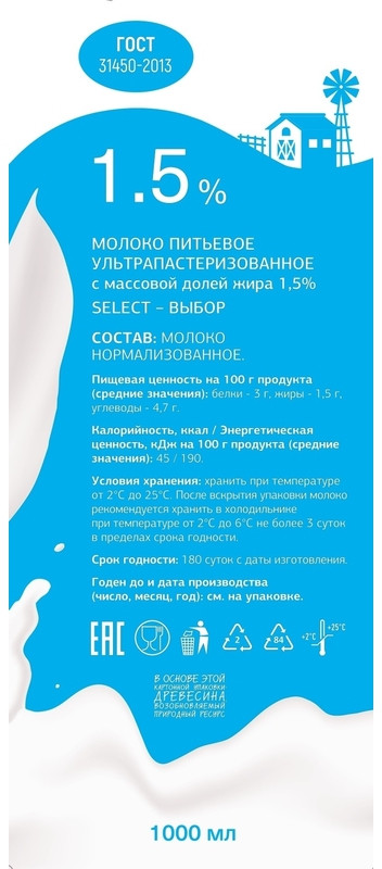 Деловой стандарт Молоко ультрапастеризованное 1.5%