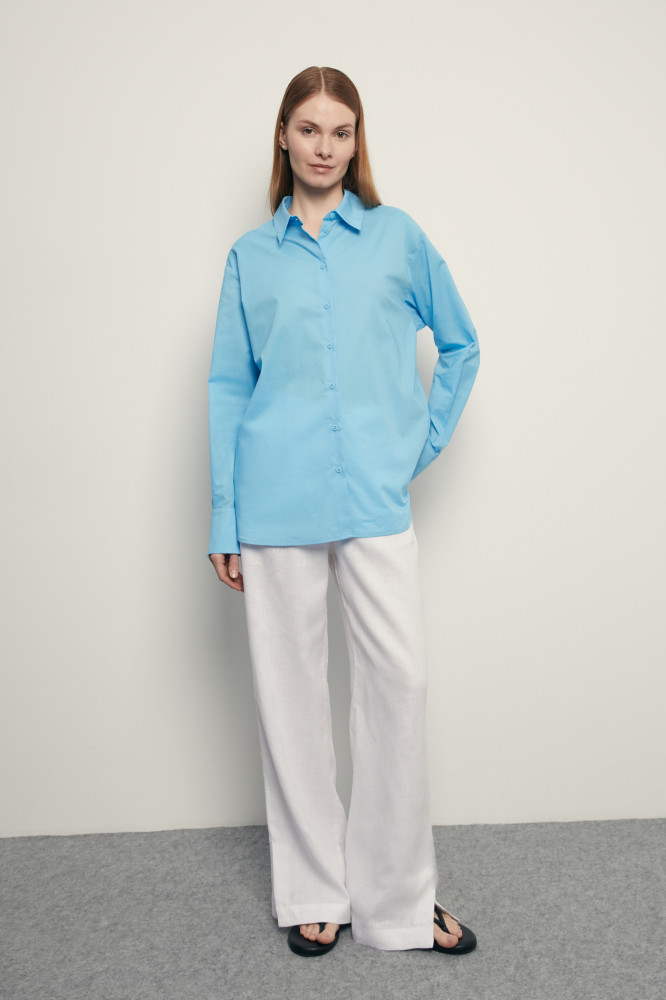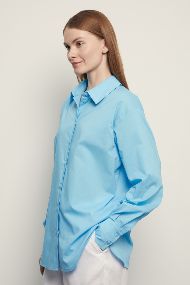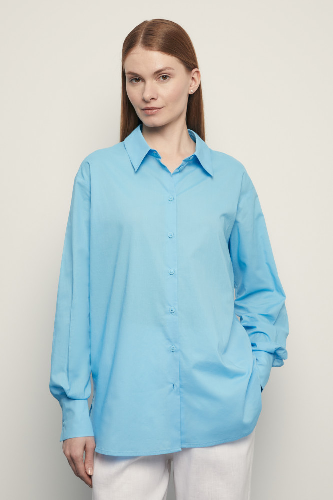 Хлопковая блузка свободного кроя. Ткань рубашки приятная на ощупь, отлично дышит, комфортна в носке и отличается высокой прочностью и износостойкостью. Простой и лаконичный дизайн позволяет легко сочетать модель с любым стилем. Приятные оттенки дополнят каждый образ нежностью и свежестью.