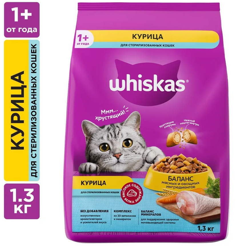 Whiskas Корм сухой для стерилизованных кошек «Подушечки с курицей»