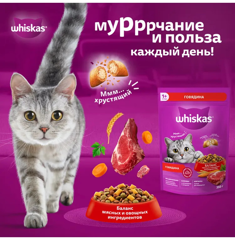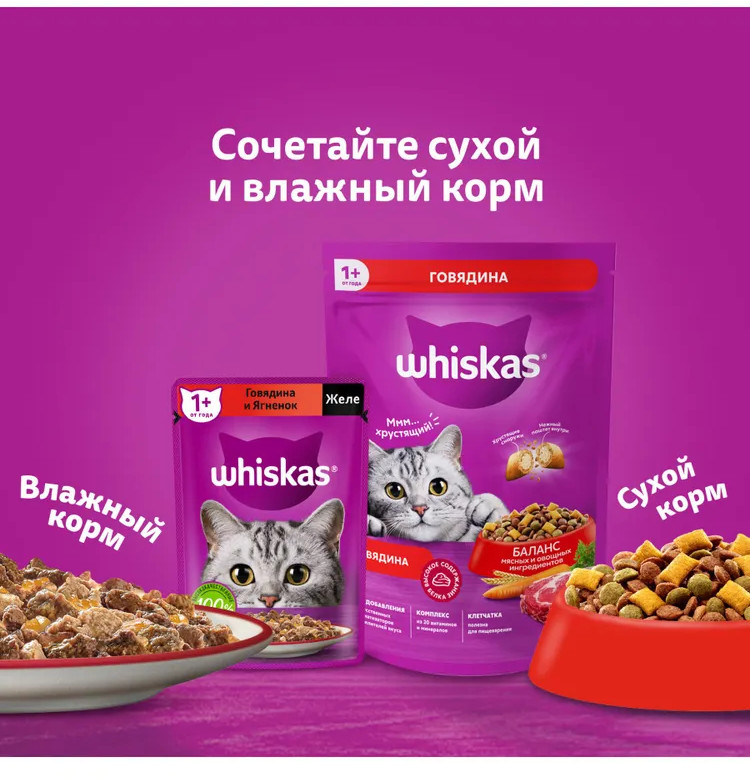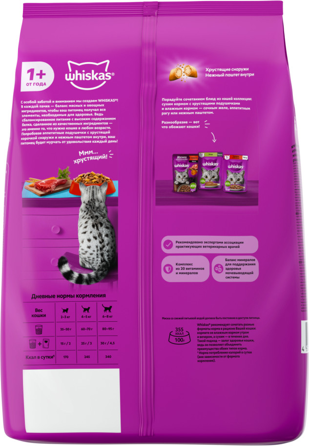 Whiskas Корм сухой для стерилизованных кошек «Подушечки с говядиной»