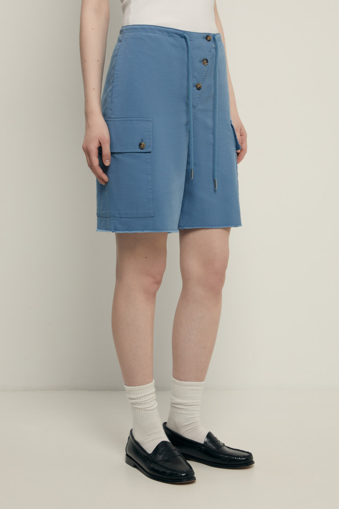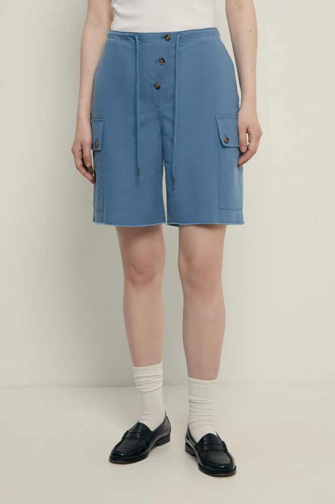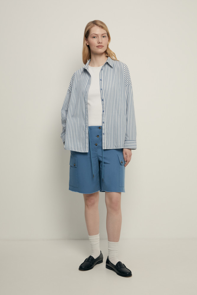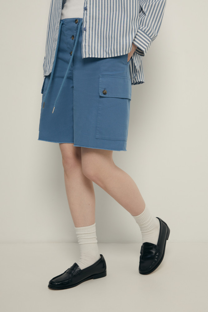 Комфортные и универсальные шорты из дышащего смесового материала. Сочетание хлопка и вискозы в составе создают прочную ткань, обладающую приятной текстурой и хорошей гигроскопичностью. Высокая посадка и прямой крой обеспечивает удобный и красивый силуэт, который легко сочетать как с оверсайз, так и с прилегающим верхом. Детали модели: застегивается на завязки, пуговицы и молнию, вместительные карманы.