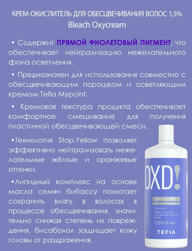 Tefia Крем-окислитель для обесцвечивания волос 1.5%/5 vol «Bleach»