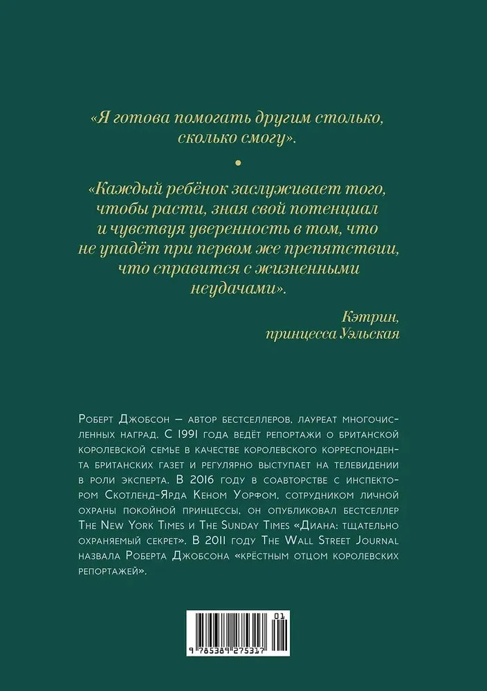 💳 Оплатить за товар можно при получении 🇰🇿 Есть бесплатная доставка по Казахстану от 1 дня 🎁 Копите бонусы с каждой покупки Серия: Персона История жизни Кейт Миддлтон похожа на современную сказку. Во время учебы в колледже привлекательная, умная и амбициозная девушка из обычной семьи влюбляется в богатого принца. И сегодня, когда монархия переживает переходный период, Екатерине суждено стать первой «королевой-простолюдинкой» в британской истории со времен Анны Хайд, жены Якова II. Кэтрин Миддлтон стала герцогиней Кембриджской в день свадьбы 29 апреля 2011 года. Красивая герцогиня завоевала любовь сограждан теплотой, заразительной улыбкой, чувством стиля и невероятной трудоспособностью. Готовность смеяться над собой, незыблемость этических принципов, доброжелательность и доступность, сделали гармоничный дуэт Кейт и Уильяма необыкновенно популярным. |