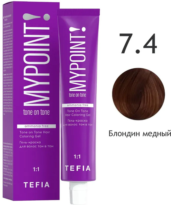 Tefia Гель-краска для волос, оттенок 7.4 Блондин медный