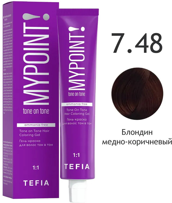 Tefia Гель-краска для волос, оттенок 7.48 Блондин медно-коричневый