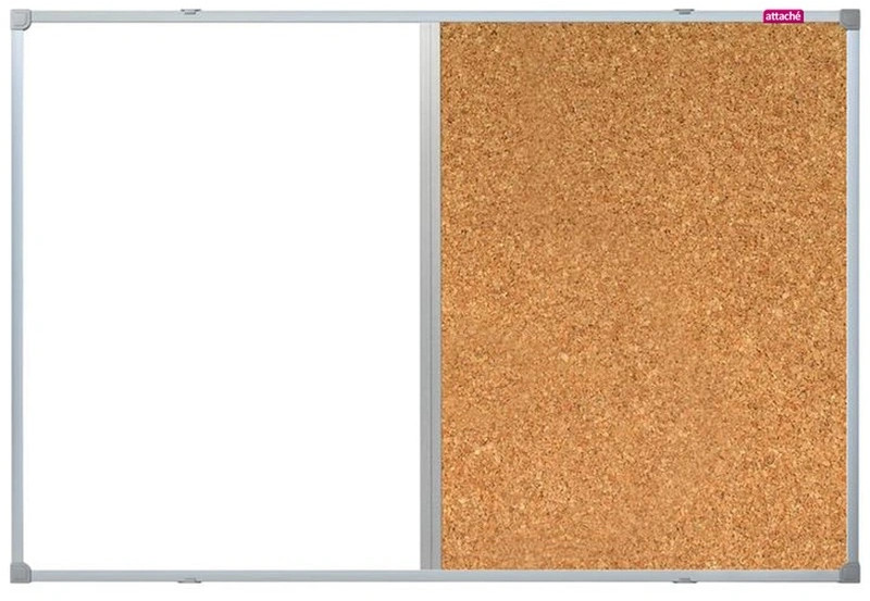Attache Доска комбинированнаяВ данный момент этот товар отсутствует в продаже. Возможно, у нас найдется аналогичный или похожий товар здесь. Доска комбинированная Attache 60×90 см. Поверхность — магнитно—маркерная лаковая и натуральная пробка. Информацию можно размещать с помощью силовых кнопок, флажков и булавок, а также маркеров сухого стирания и магнитов. Рамка и стык из алюминиевого профиля. Увеличенное рабочее пространство за счет использования утонченной алюминиевой рамы шириной 11 мм. |