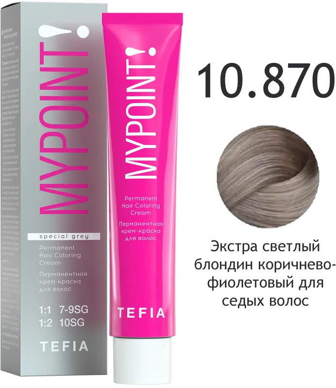 Tefia Крем-краска для волос перманентная «Special Grey», оттенок 10.870 Экстра светлый блондин коричнево-фиолетовый для седых волос