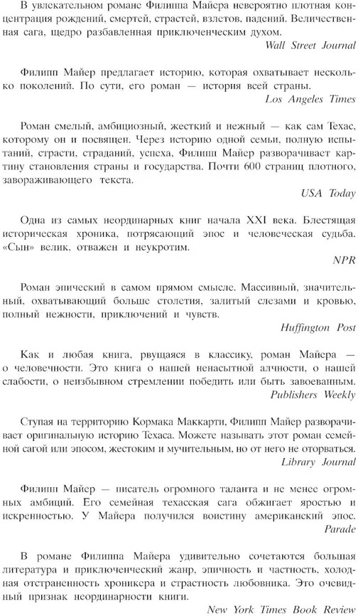 💳 Оплатить за товар можно при получении 🇰🇿 Есть бесплатная доставка по Казахстану от 1 дня 🎁 Копите бонусы с каждой покупки Весна 1849 года. Илаю МакКалоу было всего тринадцать, когда индейцы команчи напали на его дом в Техасе, убили мать и сестру, а его самого забрали с собой. Сообразительный и отчаянно храбрый Илай быстро привык к жизни среди индейцев и скоро стал одним из них. Не белый и не индеец, мальчик завис между двумя цивилизациями, уходящей и наступающей. Он сам должен отыскать свое место в мире, где приключения и трагедии сменяют друг друга с калейдоскопической быстротой. 1915 год. Питер МакКалоу придавлен чувством вины за происходящее вокруг него, за ту ярость, с какой люди выгрызают себе место под солнцем. Он полная противоположность отцу — он не действует, но созерцает и размышляет. Питер слишком рано явился в этот мир, где в цене лишь сила и напор. Середина двадцатого века. Джинни МакКалоу — несгибаемая леди, железной рукой управляющая богатейшей компанией Техаса, если не всей страны, глава мощной нефтяной империи. Ее мир — мир холодного расчета и стремительных реакций на политические новости. Но она не чувствует себя в нем своей. |
