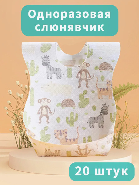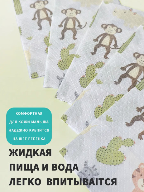 Одноразовые слюнявчики для кормления детей — набор 20 штук. Незаменимы во время кормления малыша дома и на прогулке! Каждый одноразовый слюнявчик надёжно защищает одежду ребёнка от пятен и крошек. Оснащён широким карманом, который собирает остатки пищи и помогает сохранить чистоту вокруг.