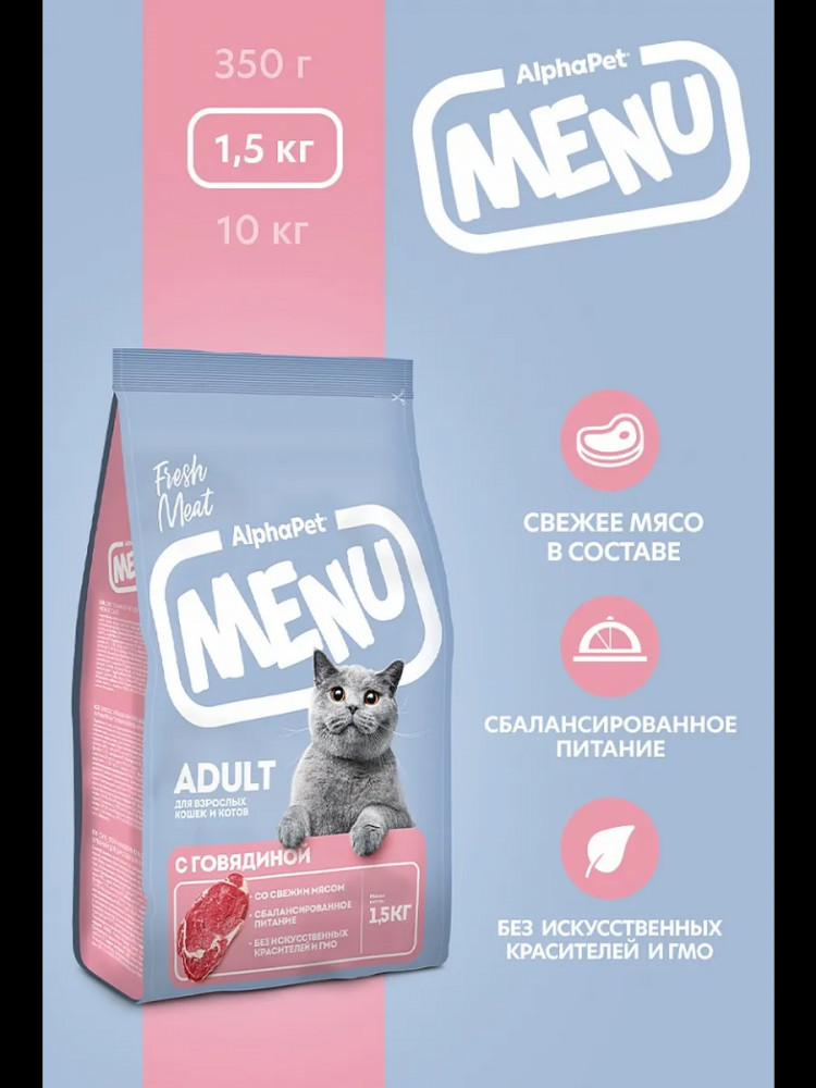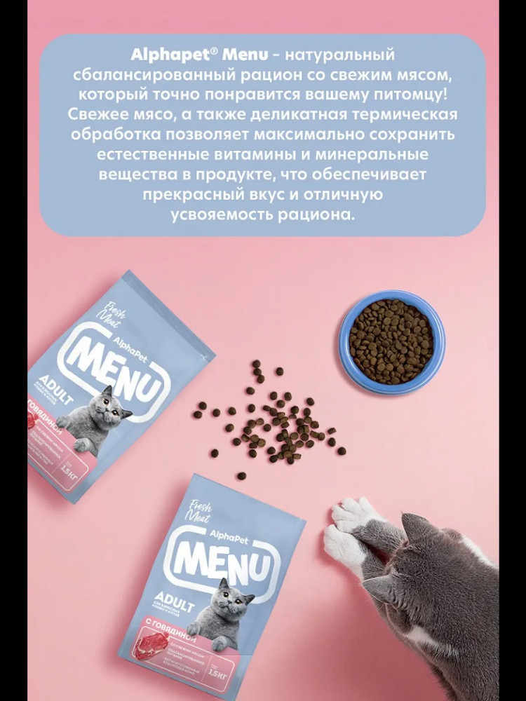 AlphaPet Сухой корм для взрослых кошек и котов с говядиной