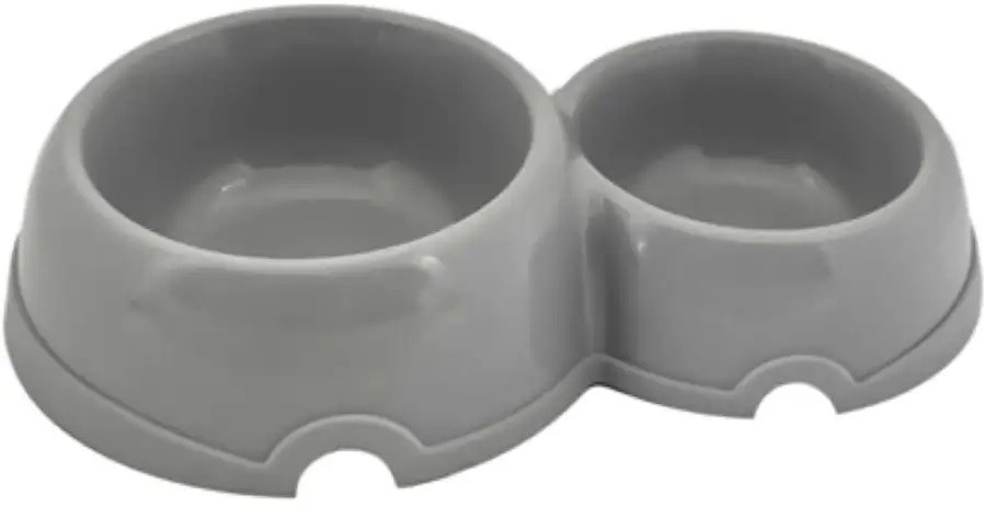 Миска выполнена в виде двух объедененных мисок на 100 мл и на 200 мл с декоративным обрамлением и полукруглым вырезом. Изготовлено из вторичного полипропилена. Очень стильная, легко впишется в любой интерьер. Имеет круглую форму, с выемками для удобного поднятия миски с пола. Кроме того, двойная миска идеально подойдет для небольшой кухни, поскольку занимает мало места.