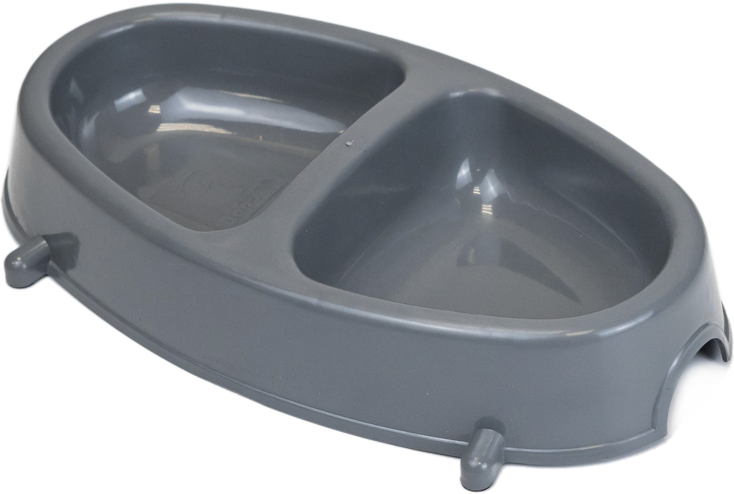 Миска выполнена в виде двух объедененных мисок на 200 мл и 200 мл с декоративным обрамлением и полукруглым вырезом. Изготовлена из вторичного полипропилена. Очень стильная, легко впишется в любой интерьер. Имеет овальную форму, с выемками для удобного поднятия миски с пола. Кроме того, двойная миска идеально подойдет для небольшой кухни, поскольку занимает мало места.