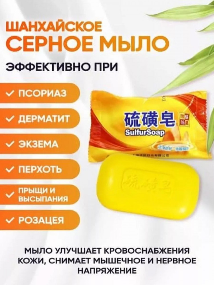 Очищающее серное мыло для лица шанхайское — идеальное решение для полноценного и эффективного ухода за кожей. Благодаря его уникальному составу, оно обладает множеством полезных свойств — омоложение кожи, разглаживание морщин, против прыщей и акне, а также эффективный уход для проблемной, жирной, сухой и нормальной кожи. Мыло отлично помогает бороться с псориазом, экземой, с прыщами.