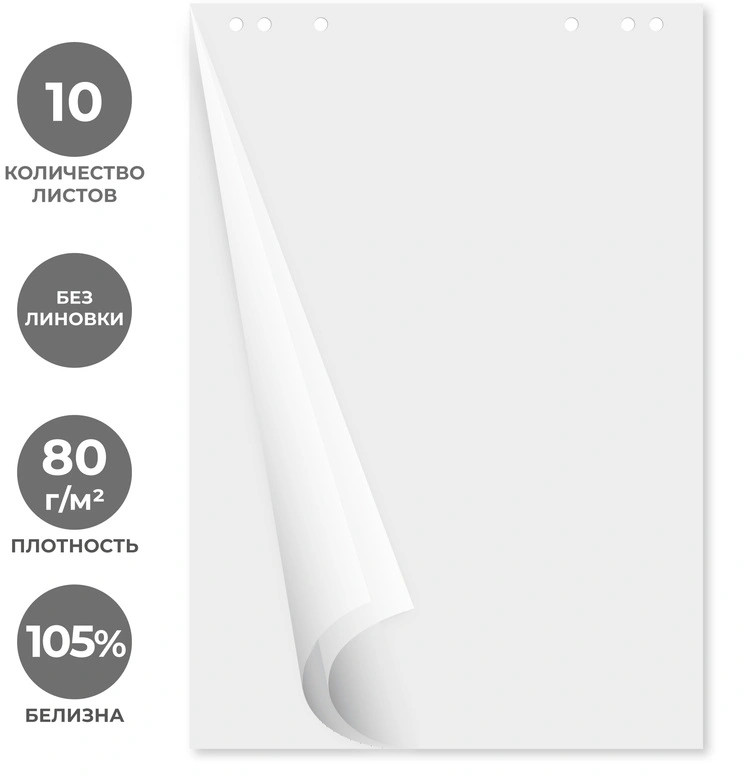 💳 Оплатить за товар можно при получении 🇰🇿 Есть бесплатная доставка по Казахстану от 1 дня 🎁 Копите бонусы с каждой покупки Блок бумаги для флипчарта со стандартными крепежными отверстиями. Отличного качества, удобен в использовании. По верхнему краю имеется перфорация для отрыва листа. |