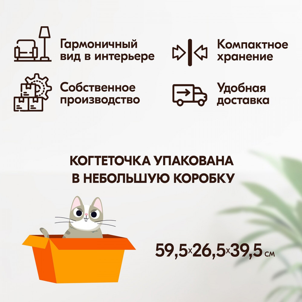 Когтеточка из линейки продукции торговой марки «Чип». Состоит из двух элементов: подставка, труба-когтедралка. Подставка изготовлена из ДСП и обработана искусственным мехом. Особенностью данной модели являются «листья пальмы» на когтедралке, которые могут быть привлекательными как игрушка для домашнего питомца.