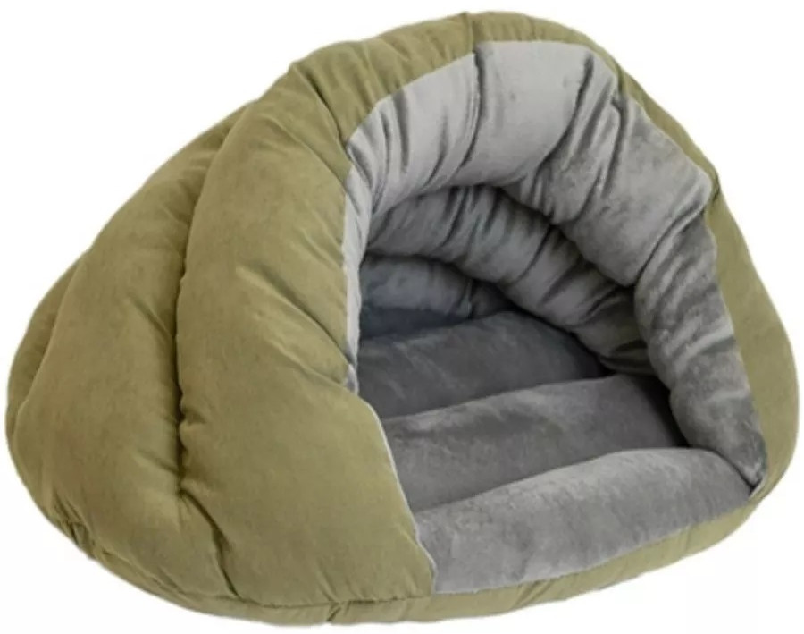 Очень необычный и стильный домик в виде ракушки. Выполнен из приятного на ощупь бархата и плюшевого меха. В набивке стенок применен синтепух. Идеально подходит как для кошек (любого размера), так и для собак маленьких пород. Изделие можно подвергать машинной стирке в режиме «шерсть» при температуре до 30°C.