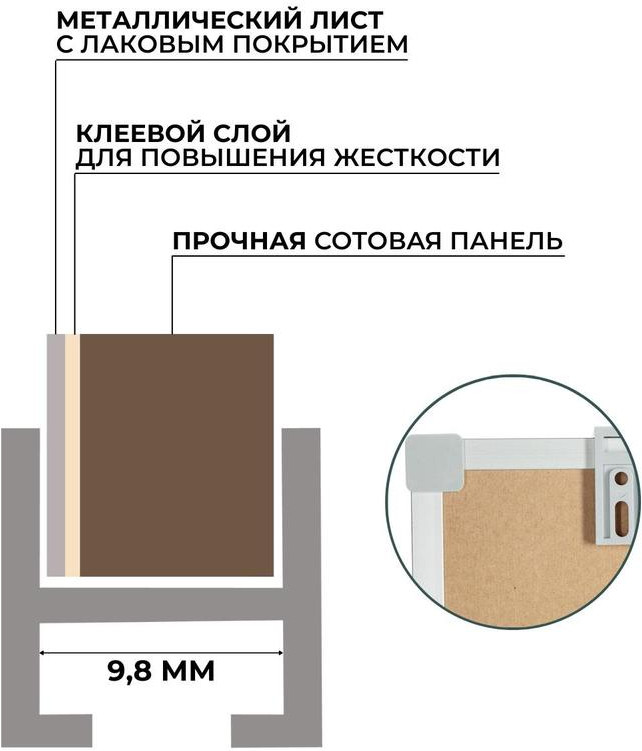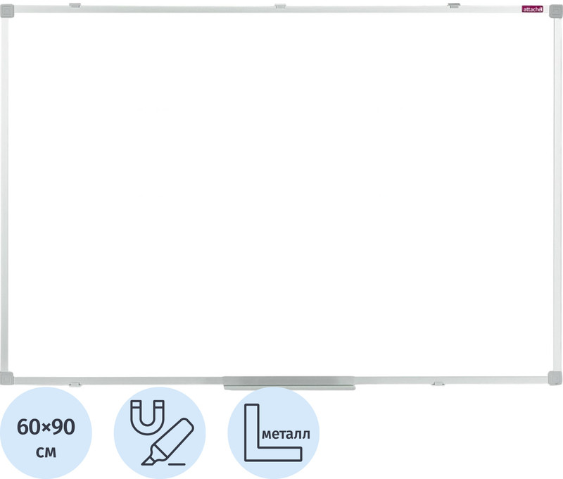 Классическая магнитно — маркерная доска Attache Classic, 60×90 см. Настенная односекционная белая, без линовки. В основании доски прочная сотовая панель из картона толщиной 9,5 мм. Толщина металла 0,3 мм. Размер рабочей поверхности: 58×88 см. Лаковое покрытие. Алюминиевая рама шириной (глубиной) 10 мм с прочными пластиковыми уголками. Магнитно—маркерная доска используется во время презентаций или для отображения материала, который нужно наглядно представить. Металлическая белая глянцевая поверхность позволяет крепить на доску важную информацию с помощью магнитов, использовать бумагу для заметок с клейким краем (стикеры) или писать специальными whiteboard маркерами сухого стирания, которые легко удаляются. Таким образом, на доске удобно размещать информацию, которая часто меняется. Эти доски используются для комфортной работы с информацией в организациях, учебных заведениях и домашних офисах. При удалении записей применяются только специальные губки-стиратели в комбинации со специализированным спреем для более тщательной очистки полотна. Для продления срока службы доски рекомендуется использовать фирменные маркеры и губки. Соблюдение правил ухода и эксплуатации способно обеспечить срок службы рабочей поверхности магнитно—маркерной доски более 10 лет. В комплекте съемная полка для маркеров, набор для навесного крепления, инструкция по установке. Расположение горизонтальное/ вертикальное.Страна-производитель — Россия. Поставляется готовой для использования. Не требует дополнительных манипуляций по отделению защитных слоев с пишущих поверхностей. Возможно изготовление на заказ по Вашим размерам.