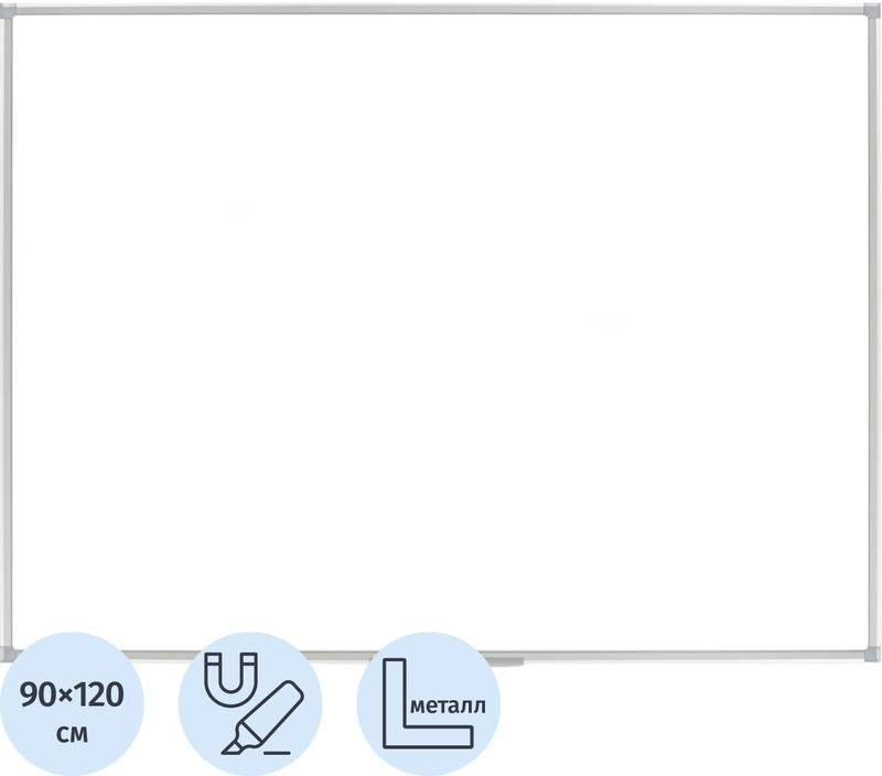 Доска магнитно—маркерная ультратонкая Attache Economy Ultra Waterproof для помещений с повышенной влажностью, 90×120 см. Размер рабочей поверхности: 87×117 см. В основании доски прочный гофролист из картона толщиной 4 мм с влагозащитным ПВХ покрытием тыльной стороны. Толщина металла 0,3 мм. Лаковое покрытие. Алюминиевая рама шириной (глубиной) 6 мм с прочными пластиковыми уголками. Магнитно—маркерная доска используется во время презентаций или для отображения материала, который нужно наглядно представить. Металлическая белая глянцевая поверхность позволяет крепить на доску важную информацию с помощью магнитов, использовать бумагу для заметок с клейким краем (стикеры) или писать специальными whiteboard маркерами сухого стирания, которые легко удаляются. Таким образом, на доске удобно размещать информацию, которая часто меняется. Эти доски используются для комфортной работы с информацией в организациях, учебных заведениях и домашних офисах. При удалении записей применяются только специальные губки-стиратели в комбинации со специализированным спреем для более тщательной очистки полотна (см. вкладку 'Расходные материалы'). Для продления срока службы доски рекомендуется использовать фирменные маркеры и губки. Соблюдение правил ухода и эксплуатации способно обеспечить срок службы рабочей поверхности магнитно—маркерной доски более 10 лет. В комплекте съемная полка для маркеров, набор для навесного крепления, инструкция по установке. Расположение горизонтальное/ вертикальное. Страна-производитель — Россия. Поставляется готовой для использования. Не требует дополнительных манипуляций по отделению защитных слоев с пишущих поверхностей.Возможно изготовление на заказ по Вашим размерам.