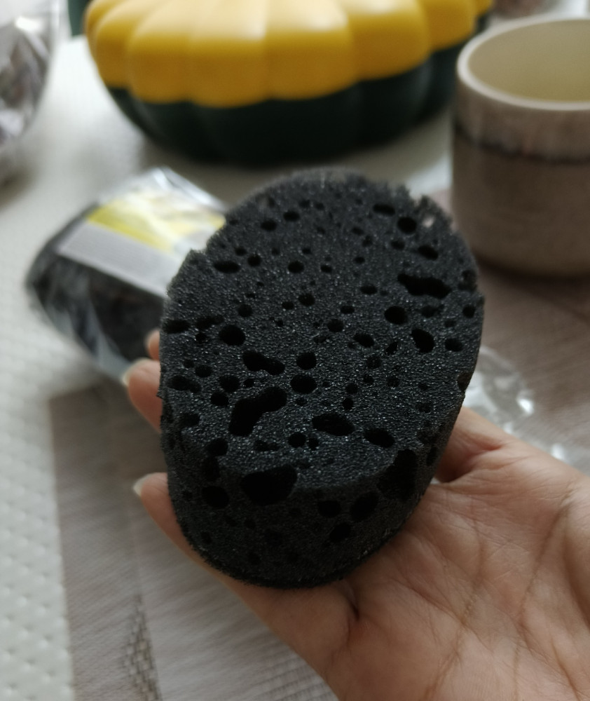 НА ПОВЕРХНОСТИ ГУБКИ ИМЕЮТСЯ ОТВЕРСТИЯ.ДЛЯ МОЮЩЕГО СРЕДСТВА.