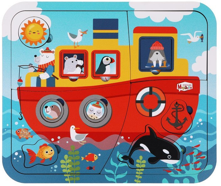 💳 Оплатить за товар можно при получении 🇰🇿 Есть бесплатная доставка по Казахстану 🎁 Копите бонусы с каждой покупки Деревянный многослойный пазл «Корабль» создан специально для малышей. Пазл состоит из 23-х деталей — вкладышей, расположенных в несколько слоев. На каждом слое изображены милые персонажи — животные, птицы, рыбы и другие подводные обитатели, а также предметы в морской тематике. Около вкладышей есть удобные выемки для маленьких детских пальчиков, поэтому ребенку не составит особого труда достать ту или иную деталь. Игра развивает пространственное мышление, мелкую моторику, логику, внимание и фантазию ребенка. Яркие детали обязательно привлекут внимание крохи! |