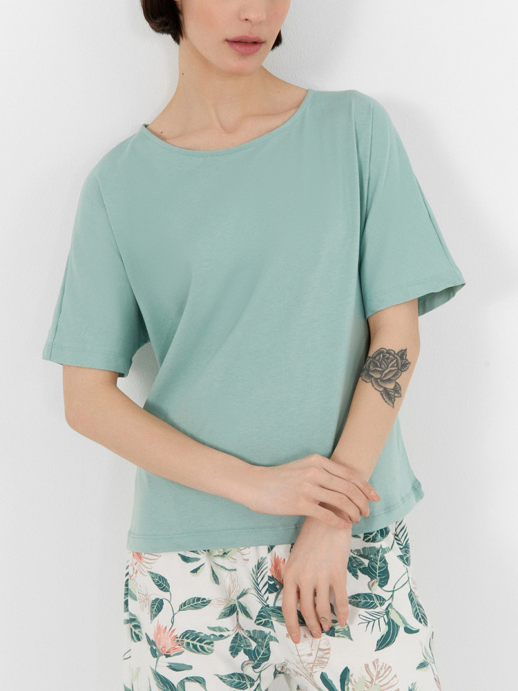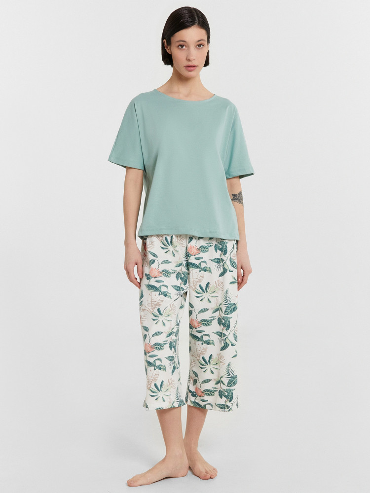Пижама или домашний костюм. Не могу сказать, что чистое х/б.В описании заявлено 99% хлопок. На мой взгляд не очень похоже, синтетики гораздо больше. Штаны нормальные, достаточно широкие. Футболка странно пошита, заужена книзу. Но как пижама вполне пойдёт.