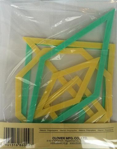 Clover Набор лекал для пэчворкаВ данный момент этот товар отсутствует в продаже. Возможно, у нас найдется аналогичный или похожий товар здесь. Набор пластиковых трафаретов из 7 штук для пэчворка (квадрат, восьмиугольник, треугольник). |