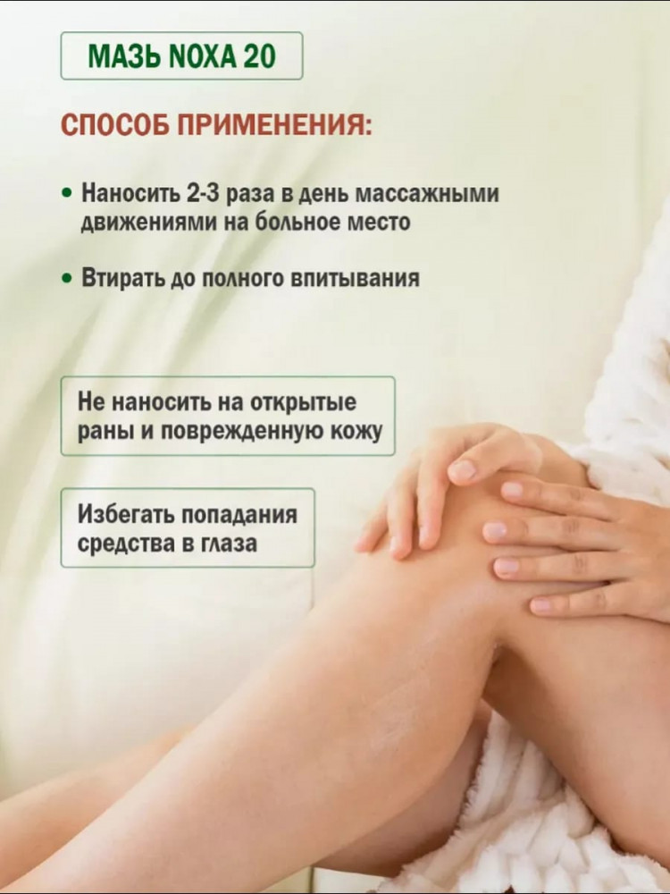 Мазь «Ноха» — надёжная поддержка для ваших суставов и мышц. Подходит для ежедневного использования в домашних условиях и в период реабилитации.