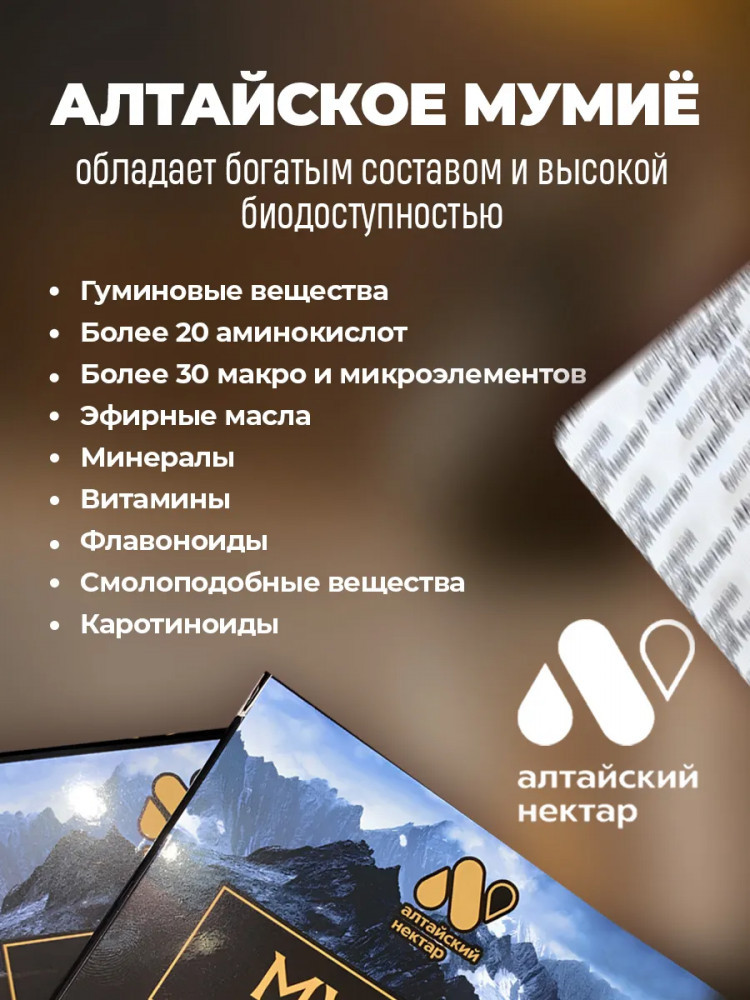 Алтайский нектар Мумие алтайское очищенное для иммунитета-12% +11