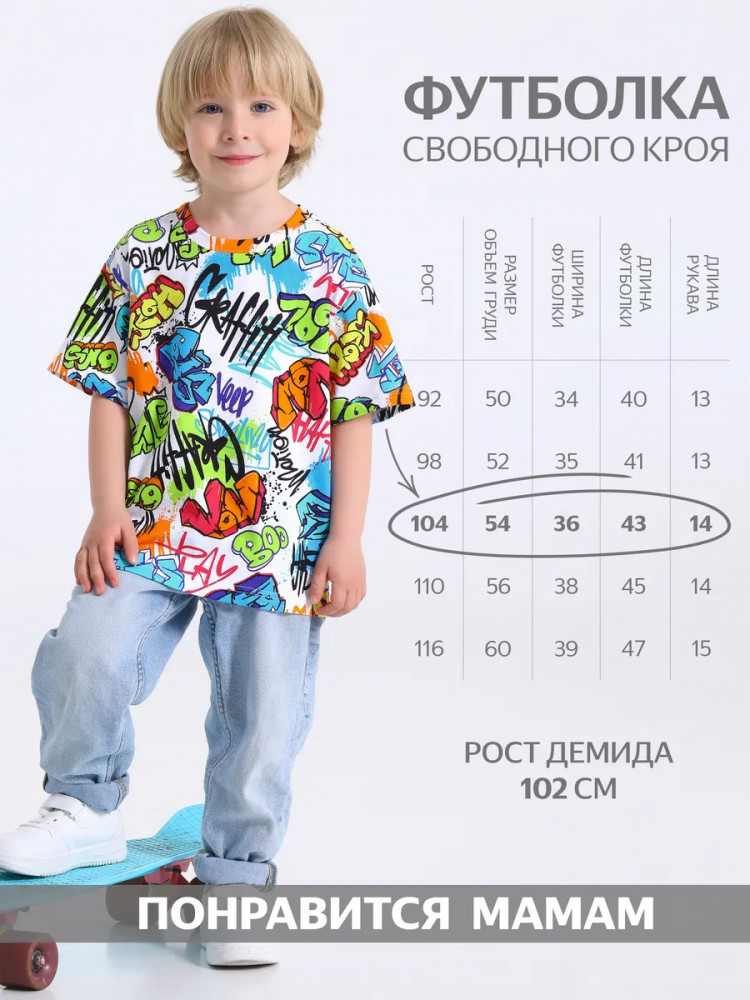 красивая футболка, правда заказала большой размер,думаю впору будет только на следующей год)сама футболка мне понравилась, качество отличное, рисунок яркий,ткань приятная