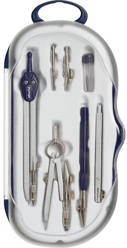 Attache ГотовальняВ данный момент этот товар отсутствует в продаже. Возможно, у нас найдется аналогичный или похожий товар здесь. Набор чертежных принадлежностей включает циркуль из металлического сплава (длина 13.5 см), запасной грифель, рейсфедер, точечную насадку, рейсфедерную вставку, удлинитель и кронциркуль. Циркуль предназначен для школьников средних и старших классов, специалистов, архитекторов и конструкторов. Упакован в ударопрочный пластиковый пенал с европодвесом, что исключает повреждение и сохраняет принадлежности исправными. |