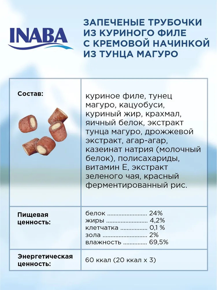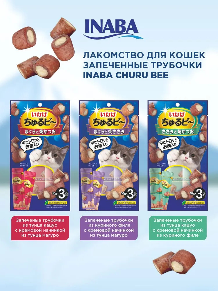 Inaba Набор трубочек запечных для кошек «Тунец Магуро и запеченное куриное филе»В данный момент этот товар отсутствует в продаже. Возможно, у нас найдется аналогичный или похожий товар здесь. Серия: Churu Bee Супер-премиальное лакомство Churu Bee для кошек с нежной кремовой начинкой на основе филе фермерской курицы и кусочков мяса тунца Магуро от японского производителя Inaba изготовлено исключительно из натуральных полезных ингредиентов. Запеченные трубочки имеют усиленный вкус вяленого тунца Кацуо, поэтому понравятся даже самым привередливым кошкам и котам. |