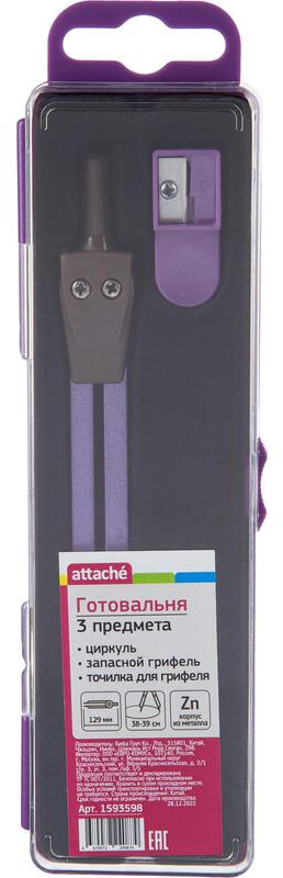 Attache ГотовальняВ данный момент этот товар отсутствует в продаже. Возможно, у нас найдется аналогичный или похожий товар здесь. Набор чертежных принадлежностей состоит из циркуля длиной 12.9 см, запасного грифеля и точилки. Предназначен для школьников средних и старших классов, специалистов, архитекторов и конструкторов. Готовальня комплектуется ударопрочным пластиковым пеналом с европодвесом, что обеспечивает удобное расположение и защиту от повреждений, продлевая срок службы принадлежностей. |