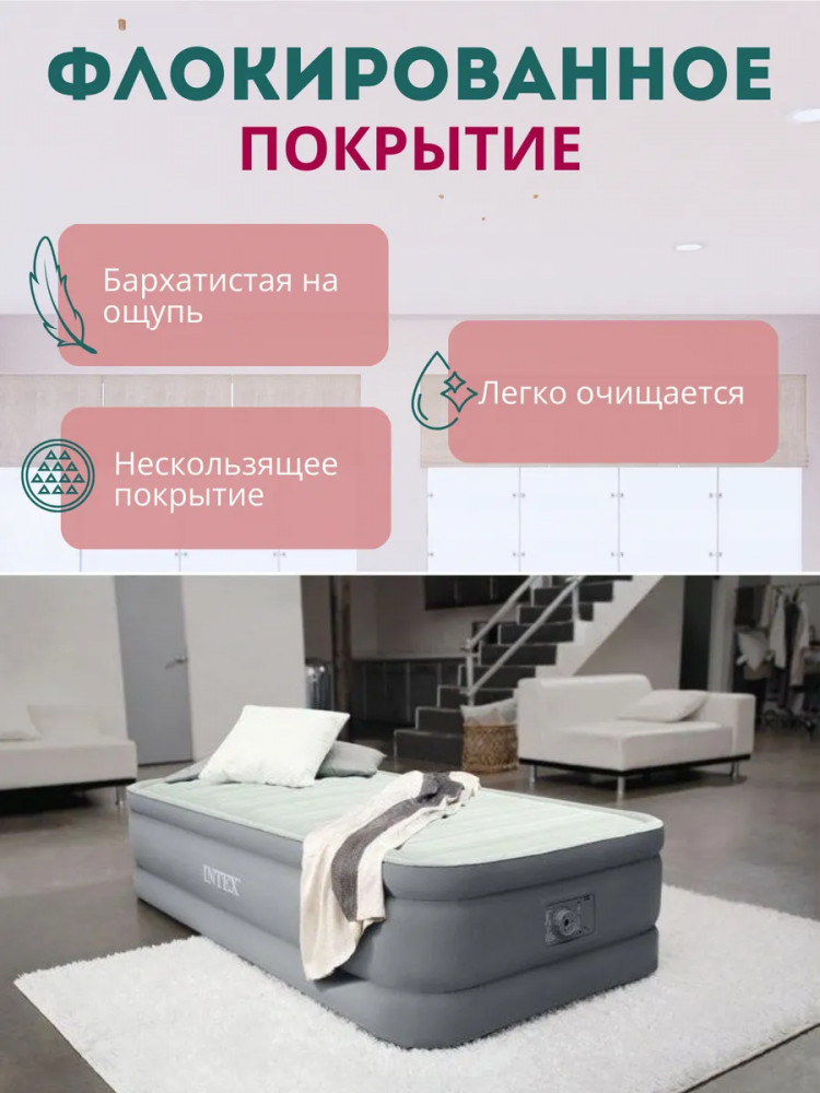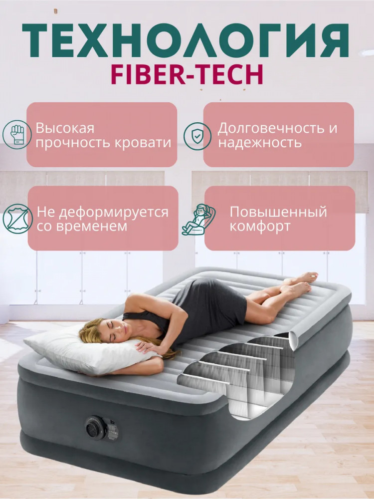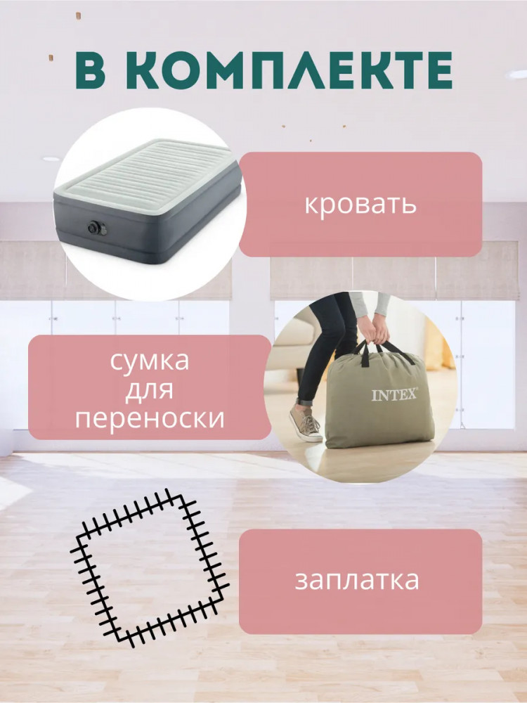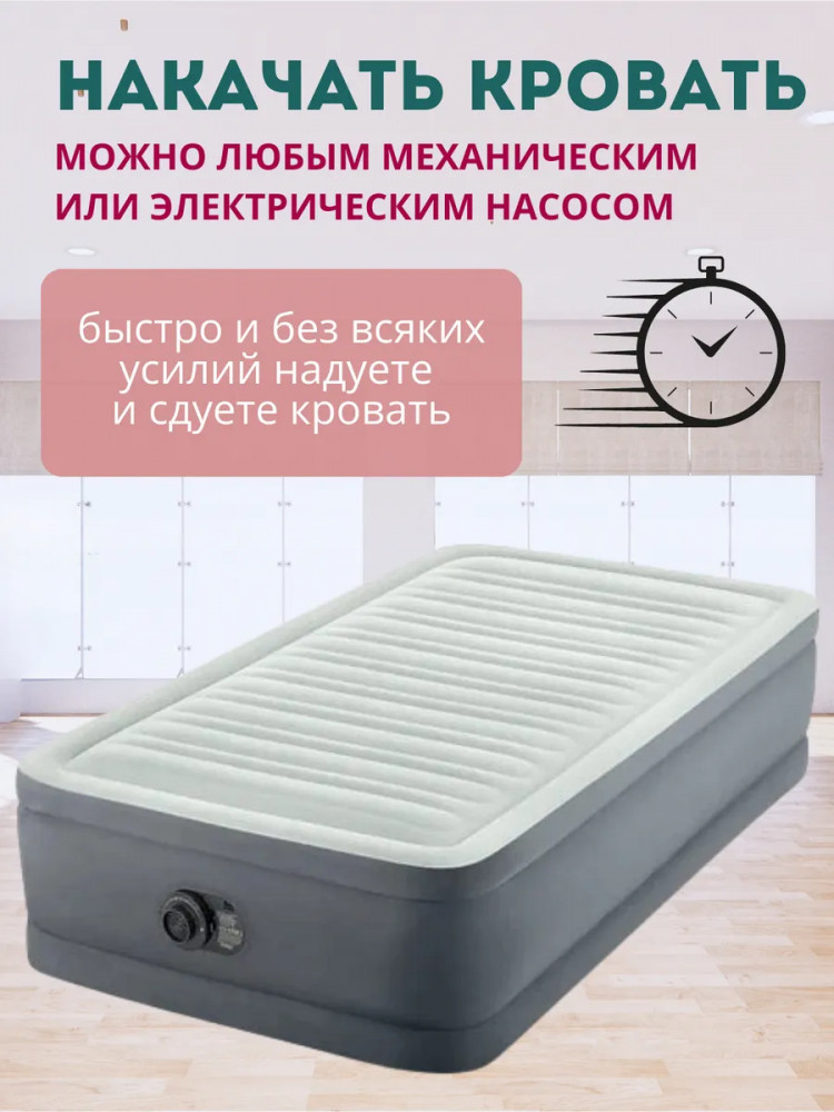 Intex Кровать надувная со встроенным насосом «Premaire Elevated»В данный момент этот товар отсутствует в продаже. Возможно, у нас найдется аналогичный или похожий товар здесь. Откройте для себя комфортный отдых с одноместной надувной кроватью для одного человека. Односпалка идеально подходит для сна и станет незаменимым спутником во время активных путешествий, обеспечивая непревзойденный комфорт. Размеры односпального матраса 99×191×46 см и его прочная конструкция позволяют выдерживать вес до 136 кг,. Высота 46 см соответствует высоте обычной кровати, что обеспечит дополнительный комфорт в использовании. Толщина нижней и боковых стенок — 0.50 мм, а верхней стенки-0,56 мм. и выполнены из прочного водонепроницаемого винила. Размеры матраца подойдут для использования в жилой комнате, вместо кровати. Прочная конструкция предназначена для того, чтобы выдерживать вес даже в самых экстремальных условиях. Особая технология Fiber-Tech с укрепленными внутренними перегородками гарантирует оптимальную поддержку, не позволяя вам погружаться в сон слишком глубоко и обеспечивая необходимую устойчивость. Но помните, эта кровать предназначена прежде всего для сна, на ней нельзя прыгать. Установите его в спальне дома или на даче во время приезда гостей. |