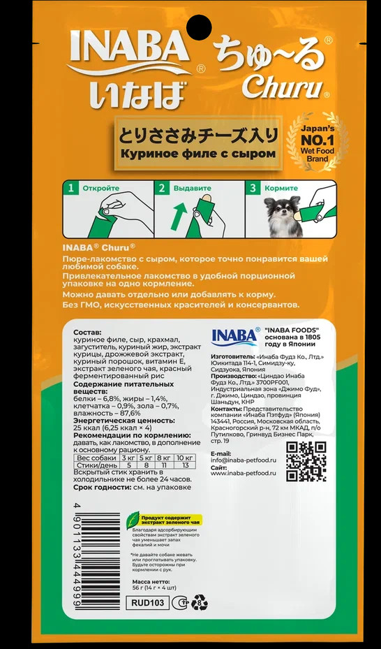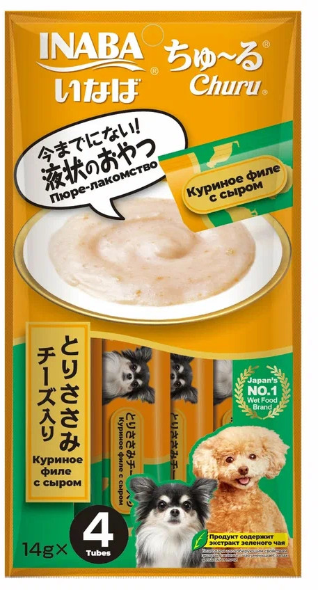 Inaba Лакомство-пюре для взрослых собак «Куриное филе с сыром»