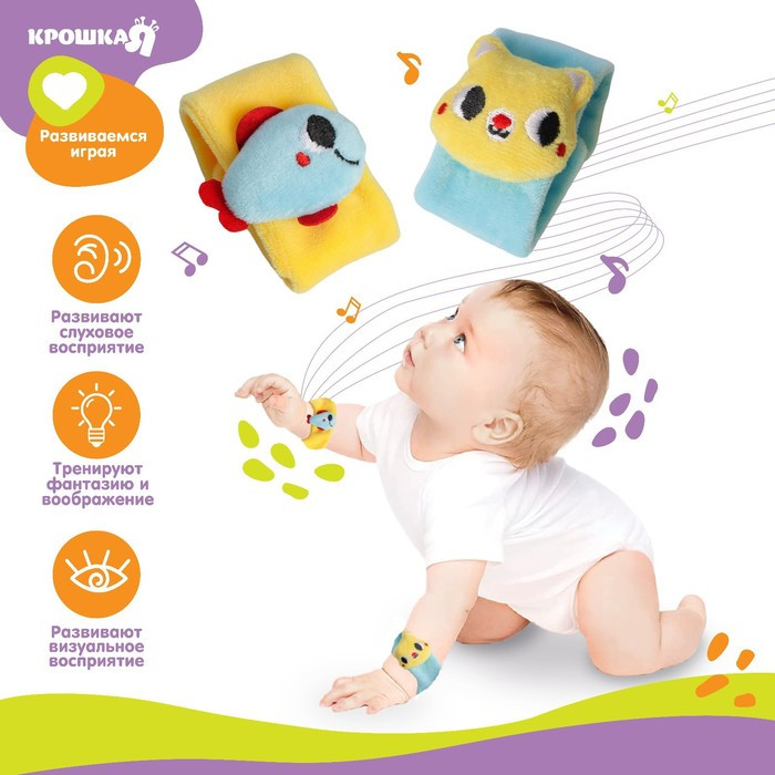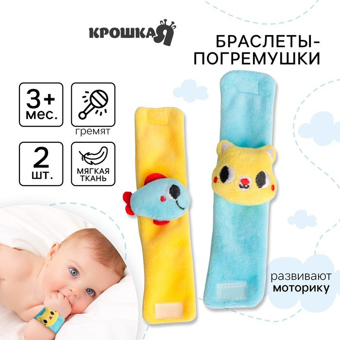 Крошка Я Набор погремушек-браслетов «Котик и рыбка»-40% +42