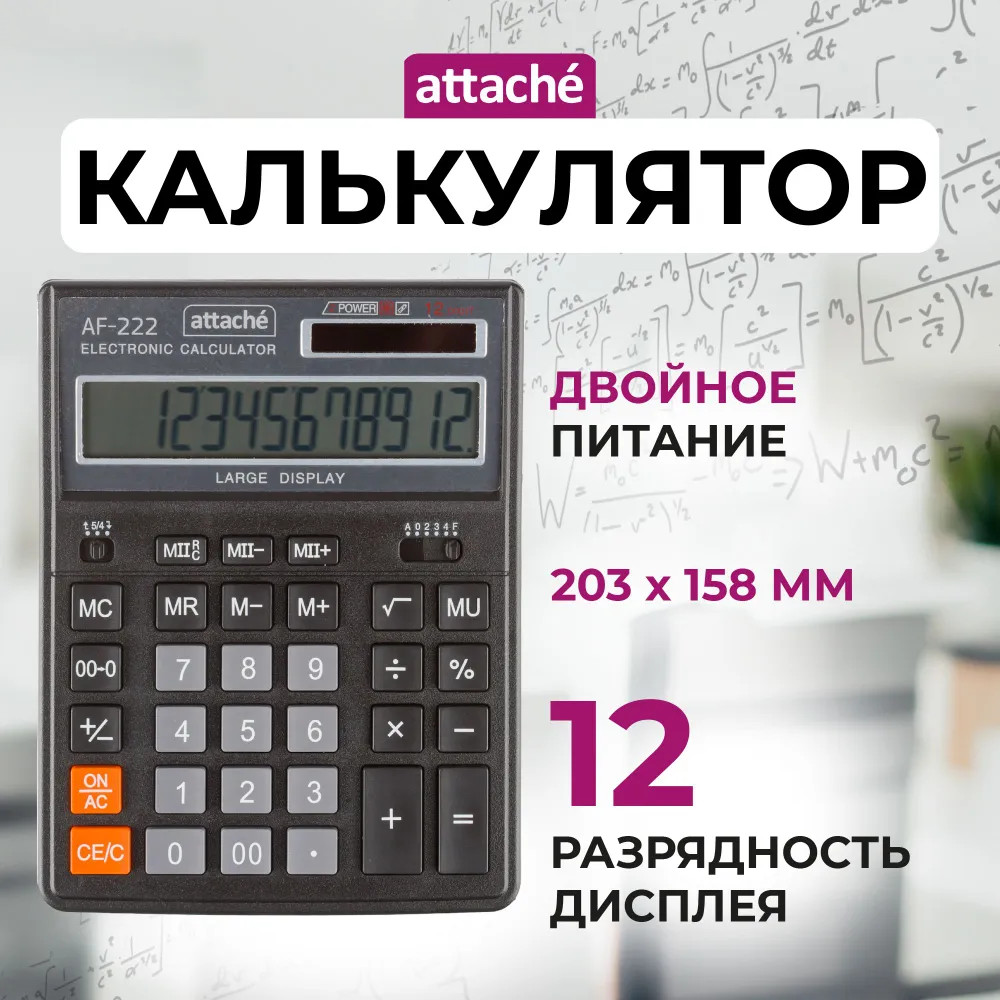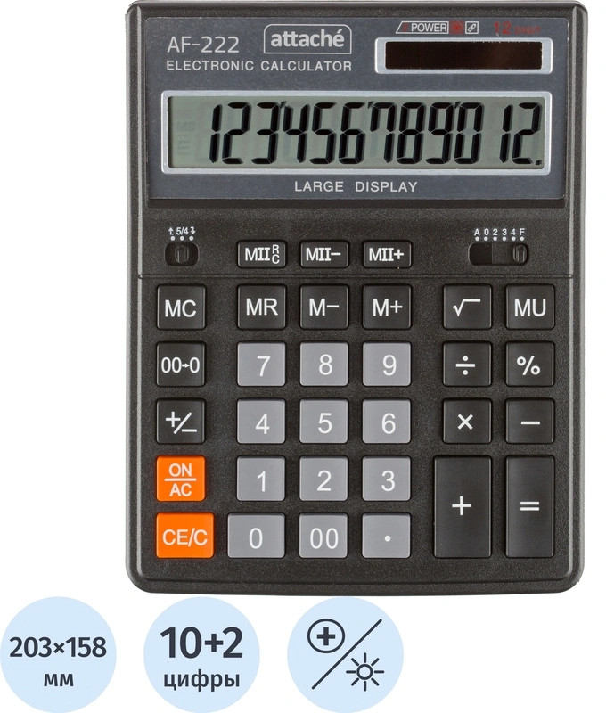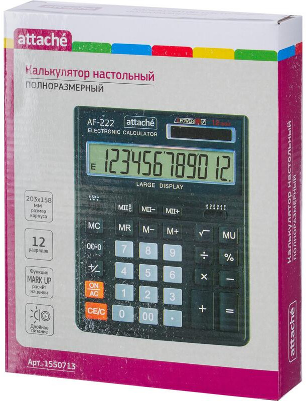 💳 Оплатить за товар можно при получении 🇰🇿 Есть бесплатная доставка по Казахстану от 1 дня 🎁 Копите бонусы с каждой покупки Калькулятор Attache AF-222 настольный в пластиковом корпусе с 12-разрядным дисплеем. |