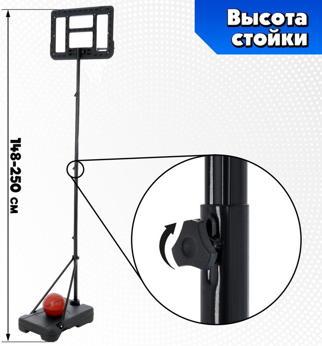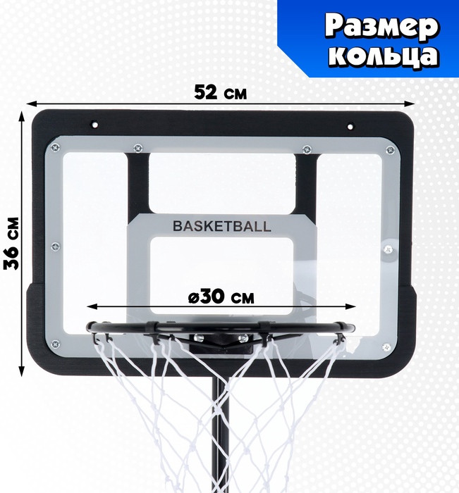 Кольцо баскетбольное с щитом и стойкойВ данный момент этот товар отсутствует в продаже. Возможно, у нас найдется аналогичный или похожий товар здесь. Откройте для своего ребенка захватывающий мир баскетбола прямо у себя дома или на улице. Преимущества: предназначен для детей от 3 лет, регулируемая стойка для настройки высоты под рост ребенка, полный комплект для увлекательной игры в баскетбол (щит, регулируемая стойка, кольцо с сеткой, мяч, насос), легкость сборки, все необходимые инструменты включены в комплект, прочное и надежное крепление. Баскетбол — это не только увлекательная игра, но и эффективный способ развивать важные физические навыки. Он стимулирует скорость, реакцию и периферийное зрение, а также совершенствует координацию рук и глаз. С помощью этого набора ребёнок сможет с интересом тренировать точность бросков и ловкость движений, одновременно развивая выносливость и укрепляя мышцы рук, плечевого пояса и спины. Регулярные занятия такой активностью способствуют улучшению физической формы, укрепляют здоровье и позитивно влияют на общее развитие ребёнка, делая его более энергичным и уверенным в себе. Стойка — регулируется от 148 до 250 см. Основание стойки — 52×36×11 см. Щит — 52×36 см. Диаметр кольца — 30 см. Диаметр мяча — 21 см. |