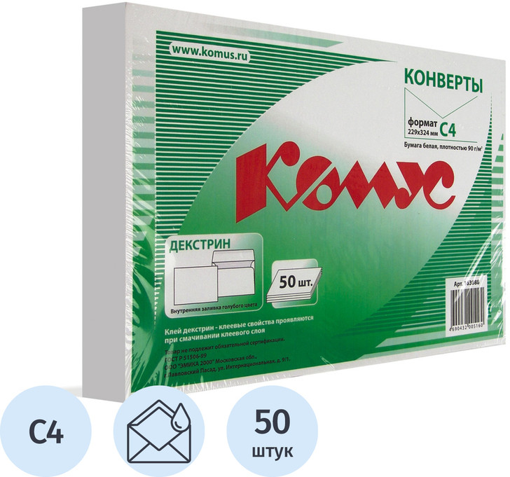 💳 Оплатить за товар можно при получении 🇰🇿 Есть бесплатная доставка по Казахстану от 1 дня 🎁 Копите бонусы с каждой покупки Конверт Комус C4 90 г/кв.м белый декстрин с внутренней запечаткой (50 штук в упаковке) 229×324 мм выполнен из высококачественного офсета 90 г/кв.м, имеет клеевое нанесение типа декстрин (смачиваемый или водорастворимый клей). Непрозрачность не менее 91%. Предназначены для пересылки 50 листов А4 формата, что равно 250 г веса. Удобен для пересылки документов формата A4. Упакован в пленку по 50 штук. Срок годности неограничен. Подходит для лазерной печати. Показатель белизны бумаги — 143-149%. |