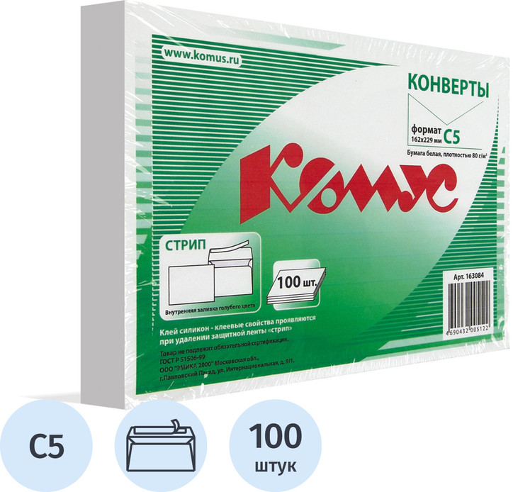 💳 Оплатить за товар можно при получении 🇰🇿 Есть бесплатная доставка по Казахстану от 1 дня 🎁 Копите бонусы с каждой покупки Конверт Комус С5 80 г/кв.м белый стрип с внутренней запечаткой (100 штук в упаковке) 162×229 мм выполнен из высококачественного офсета 80 г/кв.м, имеет клеевое нанесение типа стрип (отрывная силиконовая лента). Без окна. Предназначены для пересылки 20 листов А4 формата сложенных вдвое, что равно 100 г веса. Упакован в пленку по 100 штук. Срок годности не ограничен. Показатель белизны бумаги — 102.5-111.5%. Законодательные и технические документы |