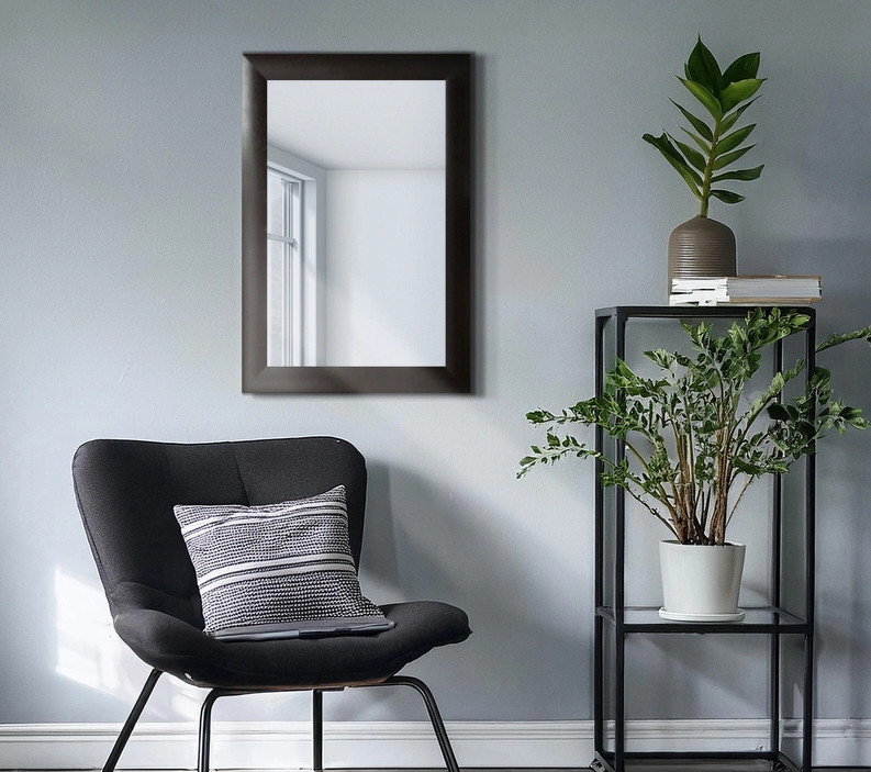 Настенное зеркало Attache, в багетной раме. Размер — 644×436 мм. Рама из деревоплиты (МДФ) с покрытием цвета венге. Возможно вертикальное или горизонтальное размещение . В комплект входит фурнитура для скрытого крепления. Размер багета (ШхГ): 50×18 мм.