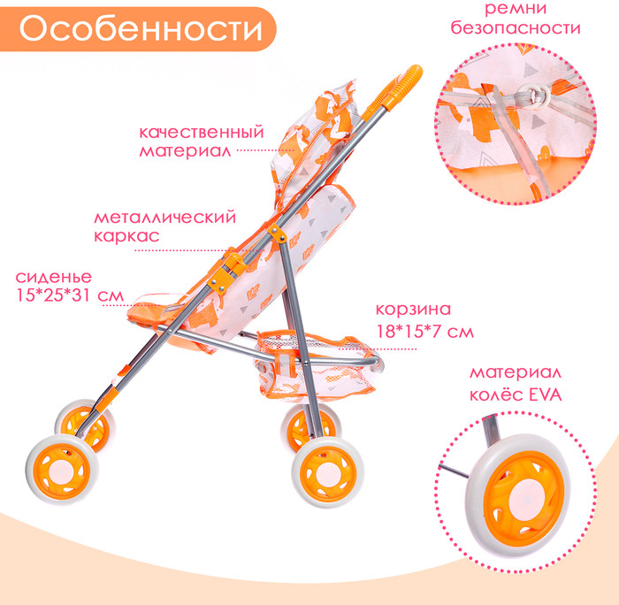 Коляска летняя для кукол «Лисички»В данный момент этот товар отсутствует в продаже. Возможно, у нас найдется аналогичный или похожий товар здесь. Откройте для своего ребёнка волшебный мир заботы и игры с нашей кукольной коляской! Стильная и лёгкая, она создана специально для маленьких ручек, чтобы прогулки с любимыми куклами стали ещё удобнее и увлекательнее. Прочная конструкция обеспечивает надёжность, а продуманный дизайн — максимальный комфорт во время катания. Яркие цвета, аккуратные детали и удобная ручка делают эту коляску идеальным спутником для прогулок, ролевых игр и развития воображения. |