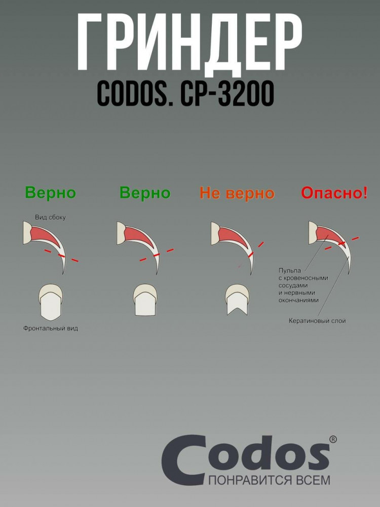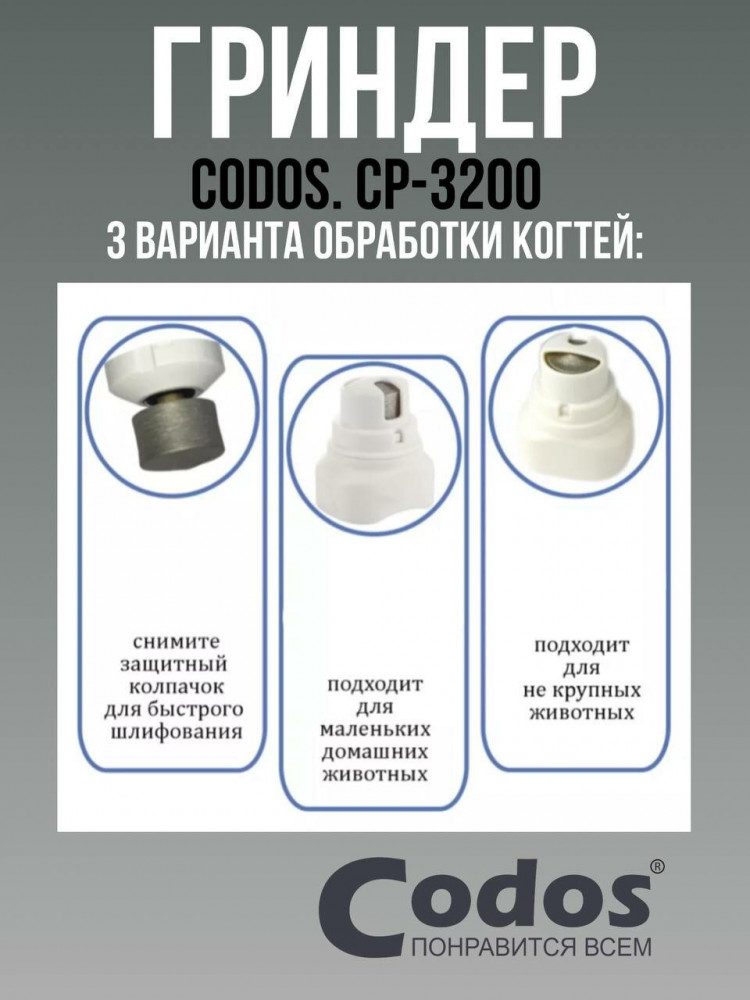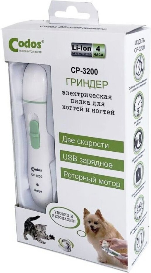 Codos Гриндер для собак и кошек СР-3200В данный момент этот товар отсутствует в продаже. Возможно, у нас найдется аналогичный или похожий товар здесь. Гриндер СР-3200 от ТМ Codos — электрическая пилка для ногтей и когтей, простой и удобный в применении инструмент с алмазным шлифовальным точильным камнем. Подходит для профессионального и домашнего использования. Надежный, мощный, современный роторный мотор. Эргономичный дизайн. Гриндер имеет 2 скорости. Мощность 5 Вт. Насадка гриндера имеет два отверстия для разных вариантов обработки когтя. Всего через 1 час подзарядки, машинку можно беспрерывно использовать до 4 часов. Сменные блоки для гриндера есть в наличии. USB-зарядное устройство в комплекте. Гарантия 12 месяцев. |