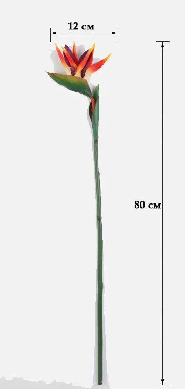 💳 Оплатить за товар можно при получении 🇰🇿 Есть бесплатная доставка по Казахстану от 1 дня 🎁 Копите бонусы с каждой покупки Стройная искусственная райская птица «Стрелиция» очаровательна, освещает комнату и поднимает настроение, передает любовь и приносит людям тепло и уют. Высота цветка — 80 см, размер бутона — 12×13 см. |