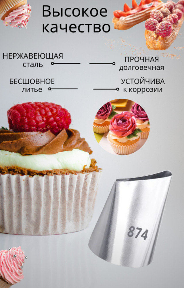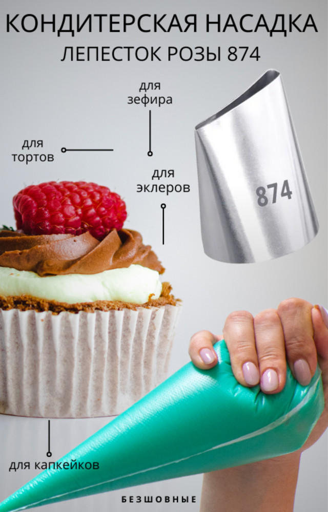 Кондитерская насадка «Лепесток розы» поможет создать реалистичные цветы и дополнить ваши кондитерские шедевры. Насадка 874 — отличное решение для формирования крупных цветов из крема и зефира. С её помощью можно создавать отдельные лепестки или собирать разнообразные цветочные композиции любого размера путём наложения лепестков друг на друга.