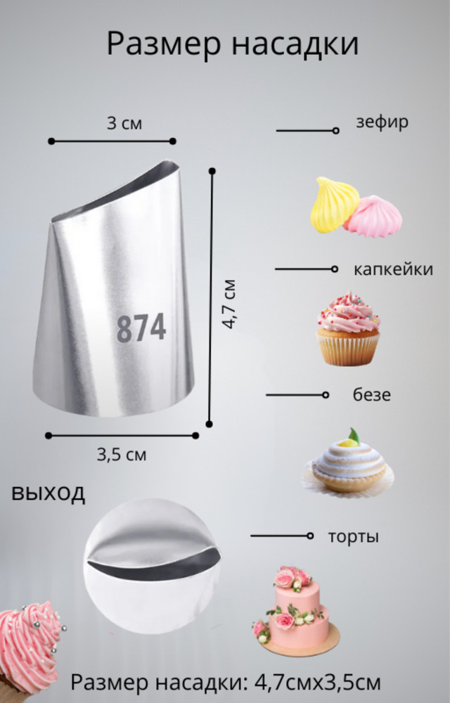 Также насадка идеально подходит для оформления бордюров, ламбрекенов, рюшей и других декоративных элементов. Насадка выполнена из пищевой нержавеющей стали, без шва. Кондитерская насадка для цветов из зефира — идеальный инструмент для создания эффектных украшений. Кондитерские насадки — отличный подарок для мамы, сестры, подруги или бабушки. Покупка набора насадок станет прекрасным выбором как для начинающего, так и для опытного кондитера.