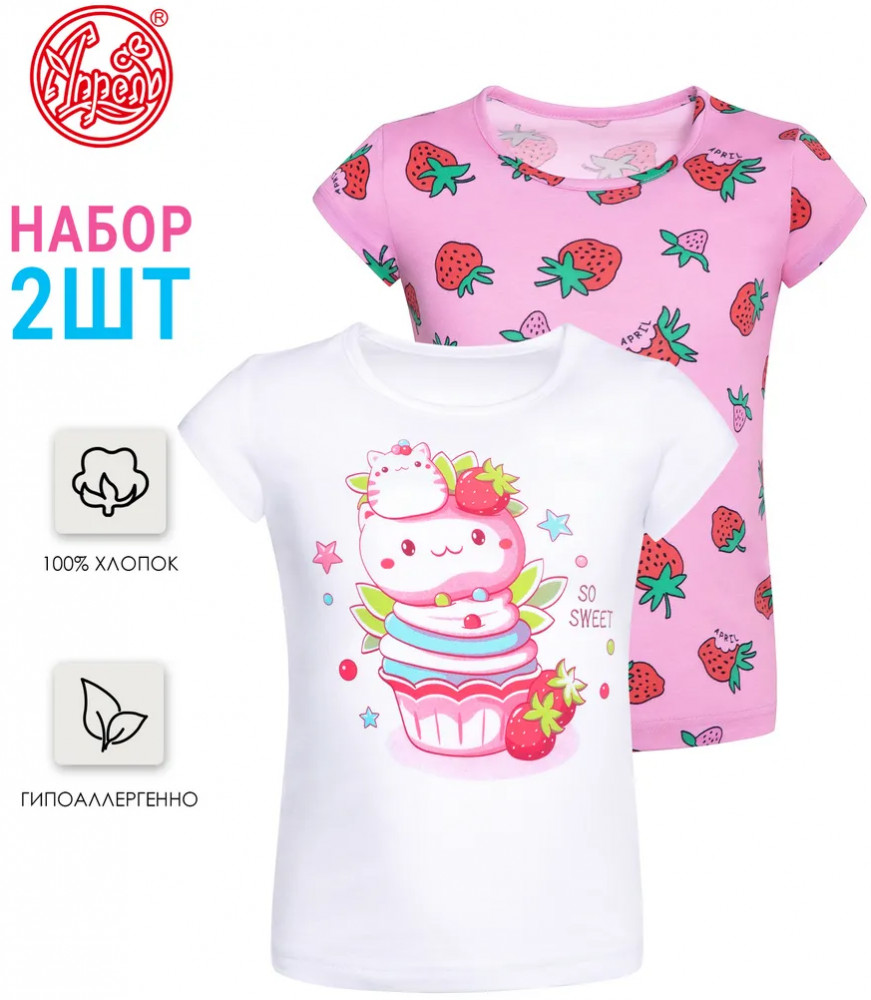 Апрель Комплект футболок для девочек «Капкейк и котята»
