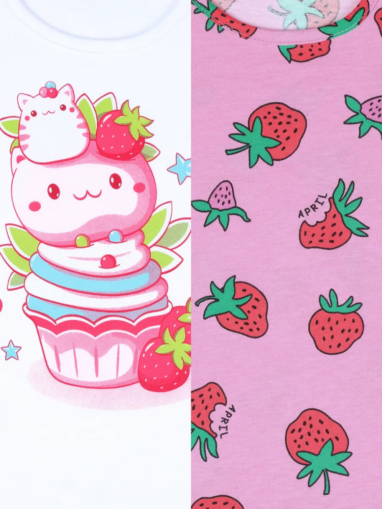 Апрель Комплект футболок для девочек «Капкейк и котята»