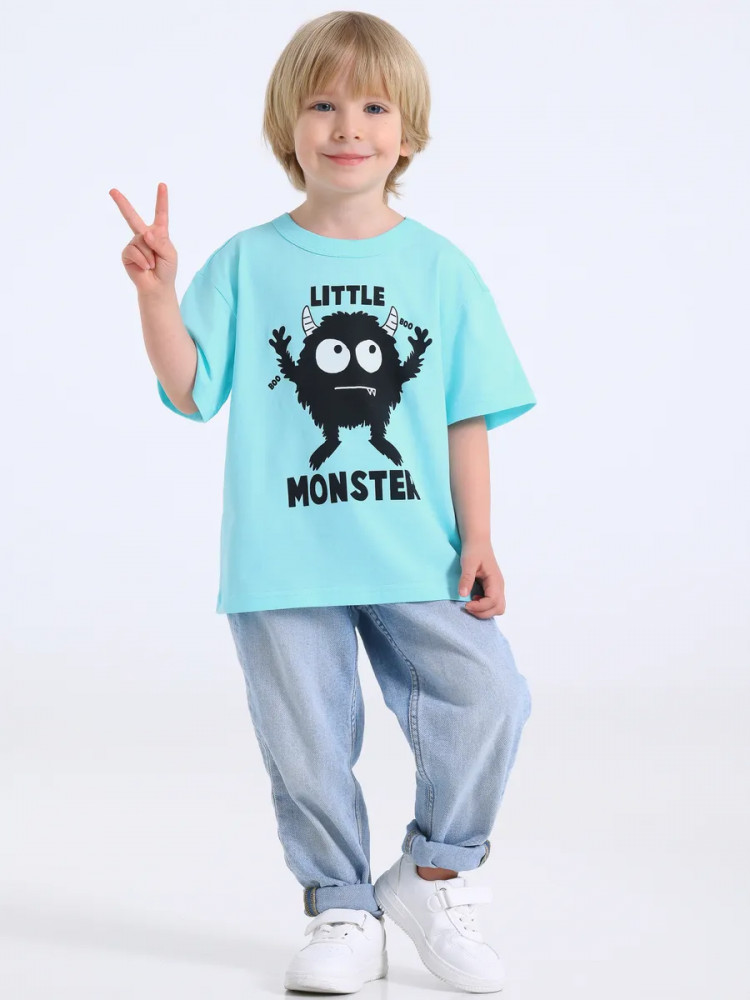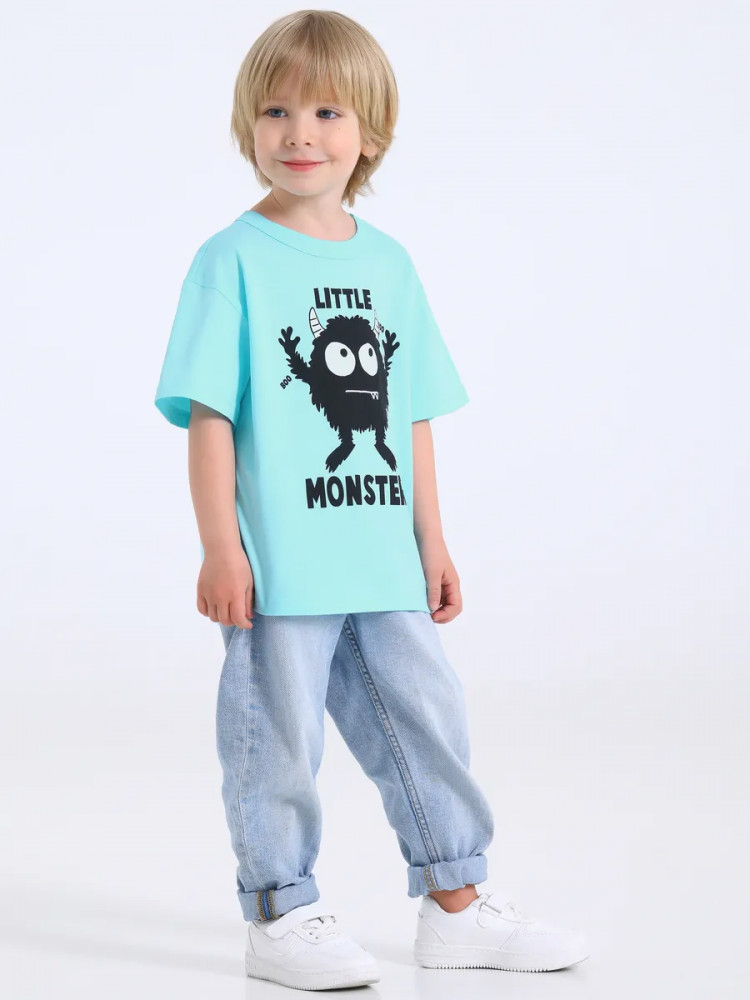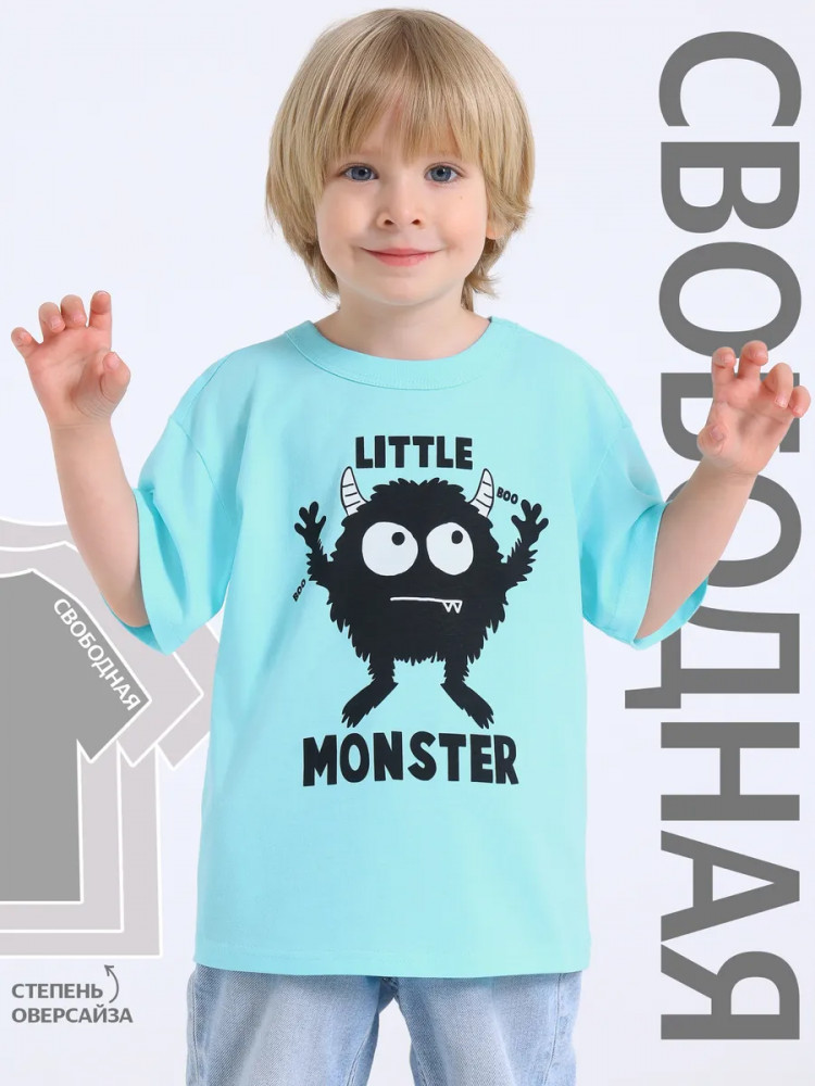 Апрель Футболка для мальчиков «Монстрик с рожками»