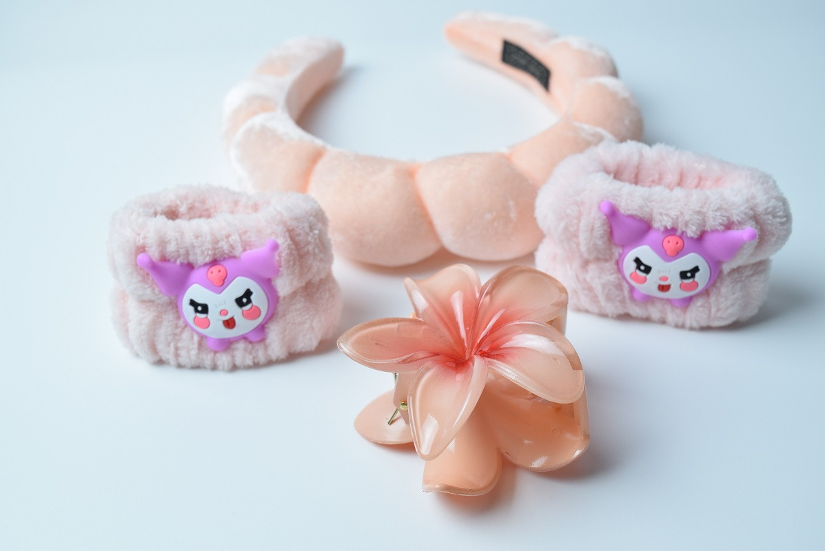 Ободок для умывания с нарукавниками и крабиком для волос «Kuromi»